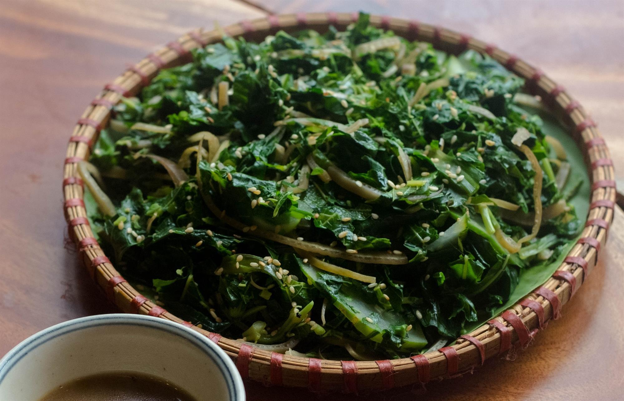 Khi nhắc tới đặc sản Phú Thọ thì không thể không nhắc tới rau sắc. Ngọn rau sắn xanh được trồng trên đồi cây là món ăn ngon đậm chất của núi rừng. Đặc sản này chế biến ngon nhất khi làm món rau sắn muối kho cùng với tép.